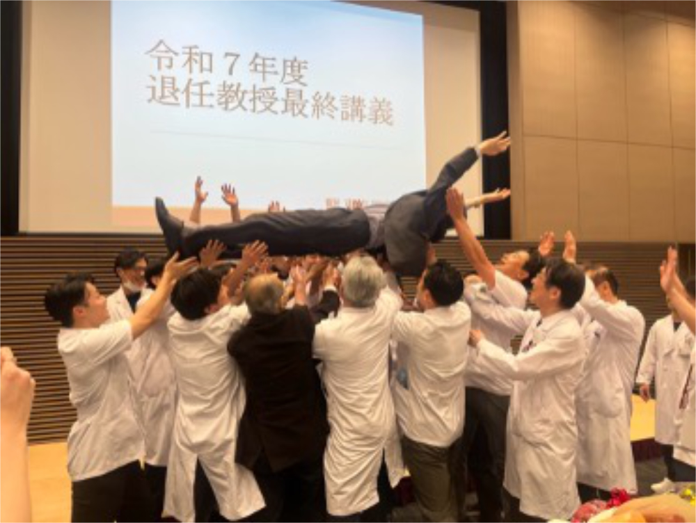 令和8年3月13日に病院の臨床講堂にて当科主任教授の山本謙吾先生の最終講義が行われました。医局員、秘書、病棟、外来、リハビリ、事務など多くのコメディカルスタッフも集まり、最終講義に華を添えました。山本先生の43年にわたる整形外科医人生の集大成とも言えるべく、非常に感銘深い内容でした。私も学生時代の講義から入局後も数えきれない多くの薫陶を山本先生から受けてきましたが、やはり最終講義となると感慨深いものがありました。